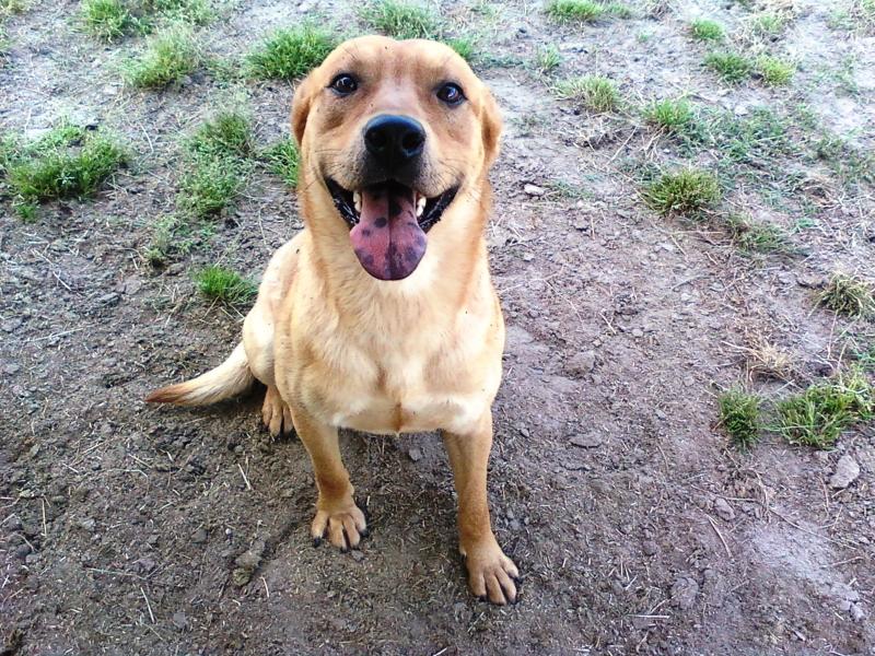 "Mandy", after a month here at the Ranch. She's happy, healthy and ready to move on to her new home. She's pushy about food, but not aggressive, and is kennelled with two other dogs, Thunder and Channie. She's great wtih the other dogs, likes people (children older than 7, please) and is loyal and devoted!