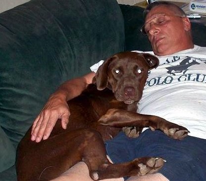 After only a few months at the Ranch, Sammie's learned to trust and to love people again! (Here, with Arthur - 08/10)