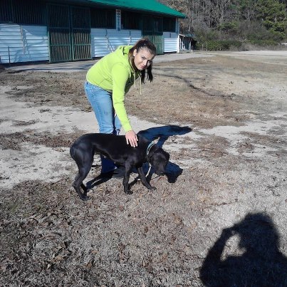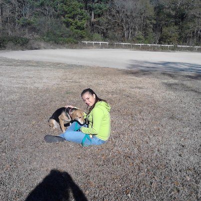 Here's Carol with our shy little hound mix, Sophie. Great job, Carol!