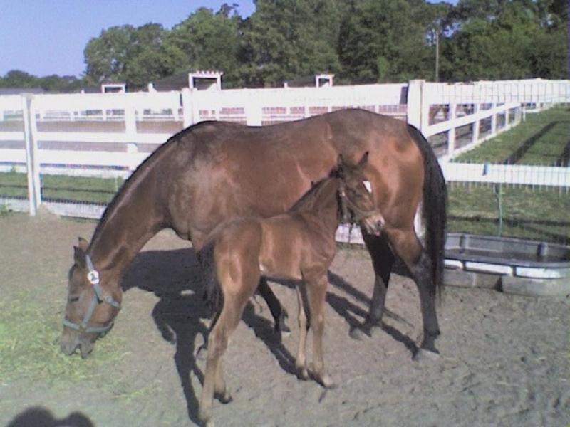 Louise is our foundation brood mare. She was 7th in the world (NRHA Top Ten year end standings) in 1997 in the Limited Non Pro division, and was a semifinalist in the first ever USET Reining Challenge (in 1999). Shown here with her last foal, Hickory's Last Louise