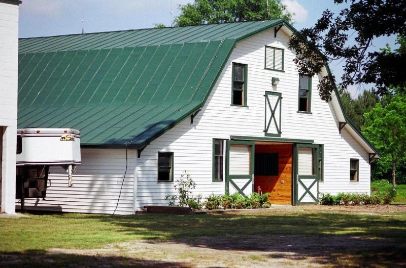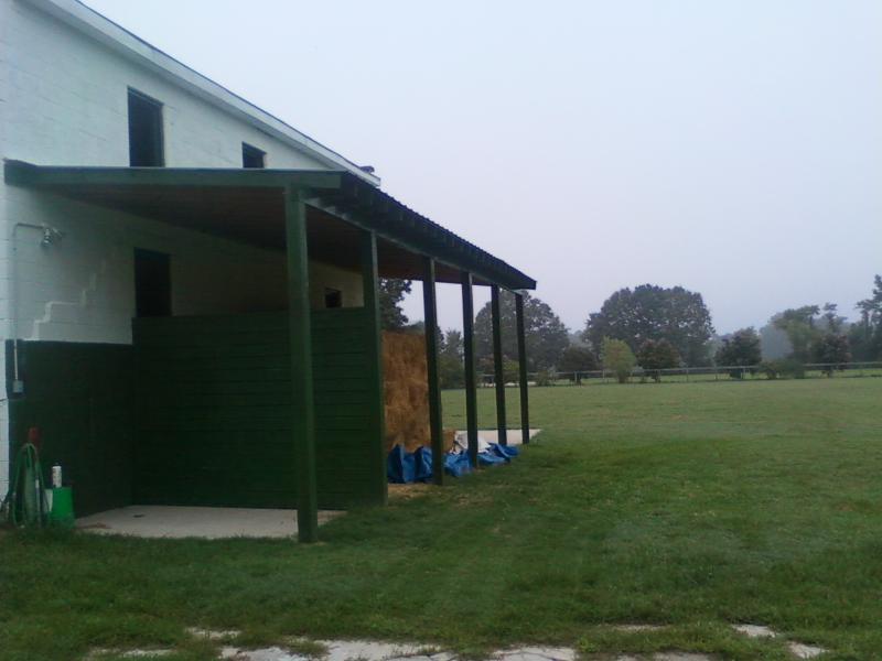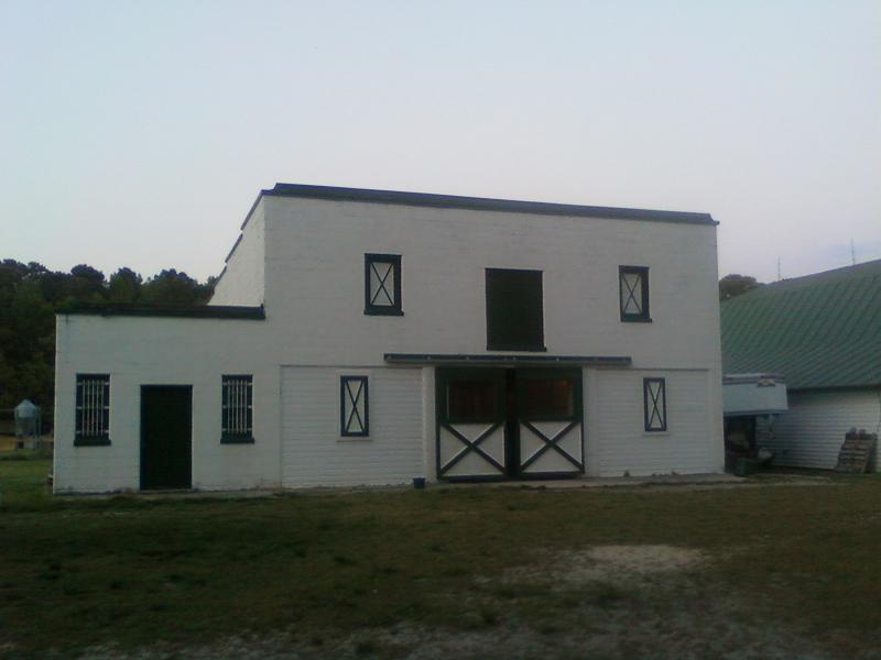 A covered shed has been built off the back of the smaller barn, over a concrete slab, and this houses the wash-rack and hay storage. Attached to this barn is a separate structure made entirely of concrete block which can be fitted up as aveterinary clinic.